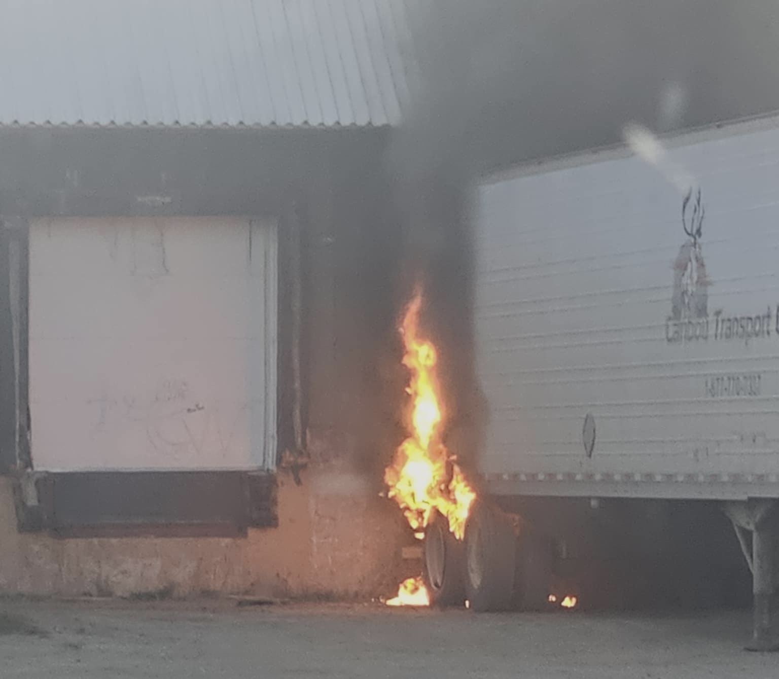 Upon arrival, there was black smoke coming from the rear of a 53-foot enclosed semi-trailer unit up against a building. The fire was contained to a small area at the back of the trailer, which suffered moderate damage.