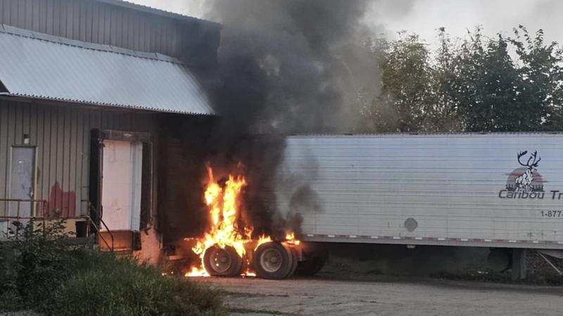 Upon arrival, there was black smoke coming from the rear of a 53-foot enclosed semi-trailer unit up against a building. The fire was contained to a small area at the back of the trailer, which suffered moderate damage.