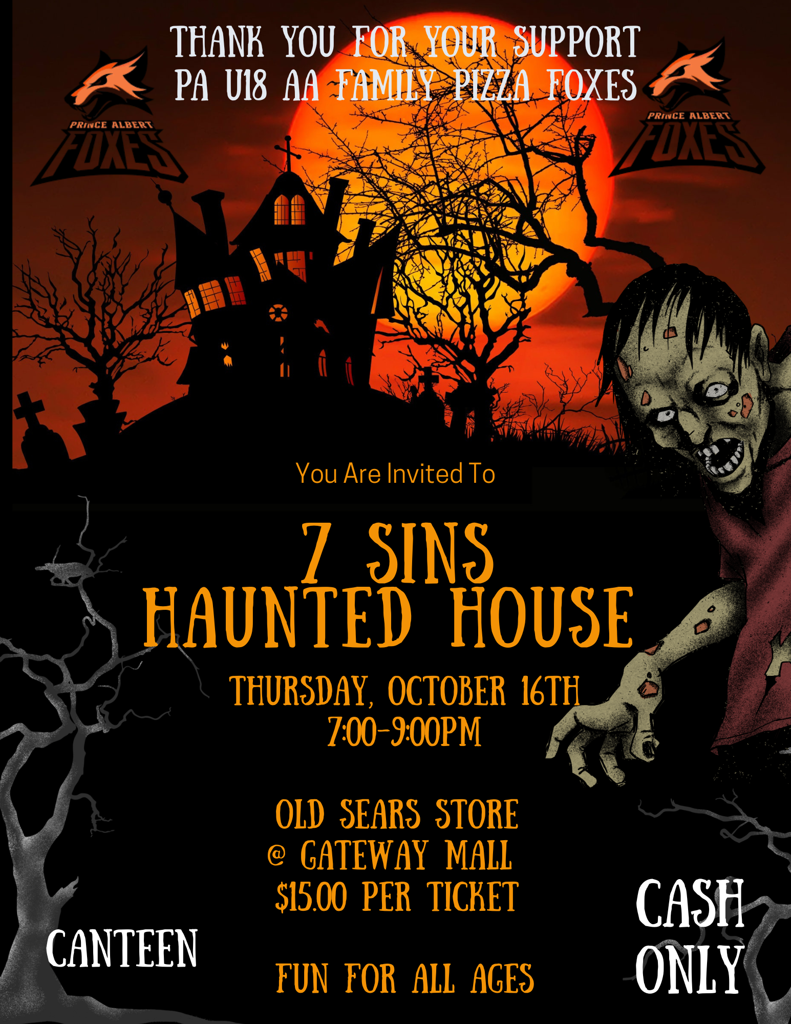 The PA U18 AA Family Pizza Foxes is hosting the 7 Sins Haunted House on Thursday, October 16.