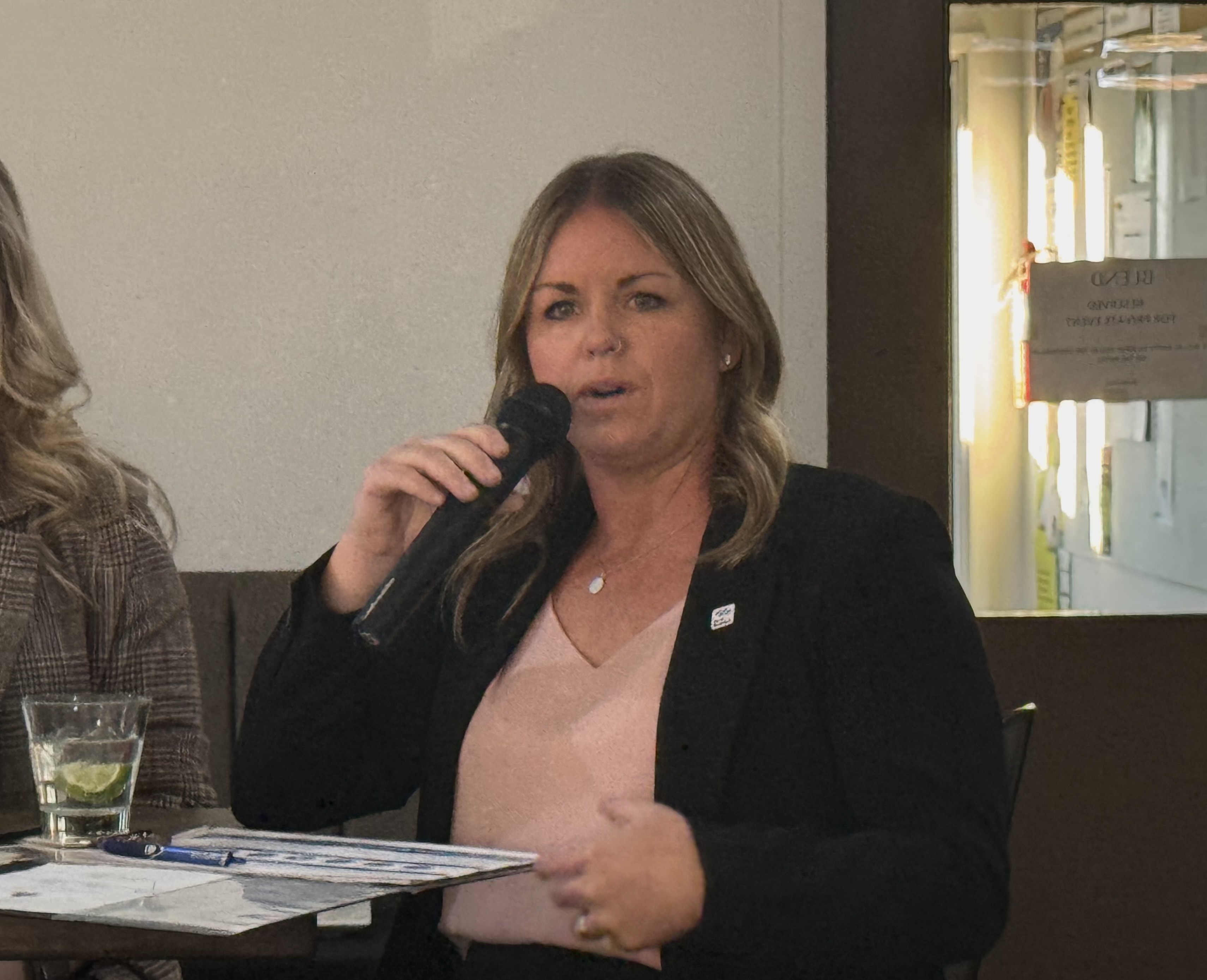 North Battleford Mayor Kelli Hawtin speaks during the Chamber on Tap event Oct. 9 at The Blend Riverside in North Battleford. (Kenneth Cheung/battlefordsNOW)