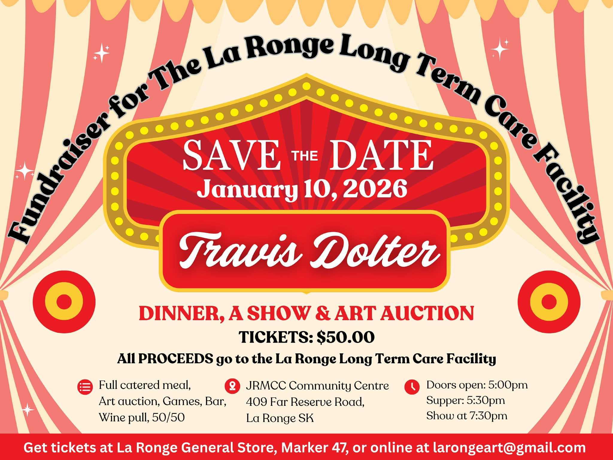 Performances will continue in 2026 with up-and-coming country signer Travis Dolter at the Jonas Roberts Community Memorial Centre on Jan. 10 at 5 p.m., followed by country singer Tommy Charles at the same location on April 18 at 6:30 p.m.