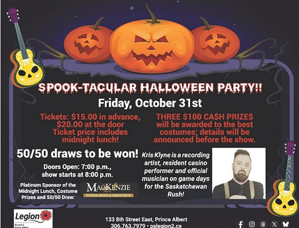 The Royal Canadian Legion is hosting a Spook-Tacular Halloween Party October 31st.