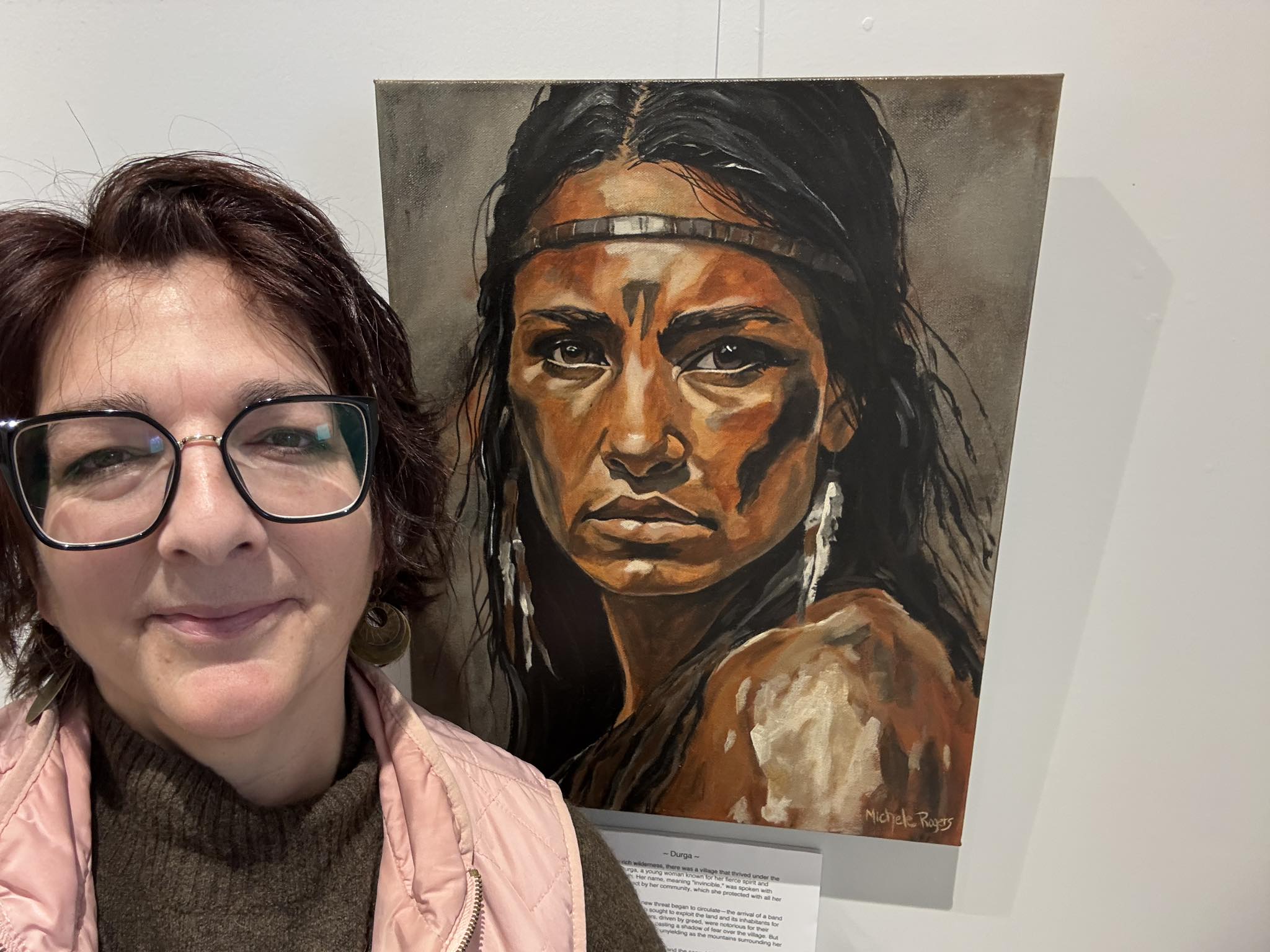 Window painting by Michele Rogers at Sound City in North Battleford. (Michele Rogers Art /Facebook)“I kind of have a story in mind that I’d like to tell, and then I’ll just source out some images online or sketch them out myself and come up with the idea of what it is that I want to do,” she said.