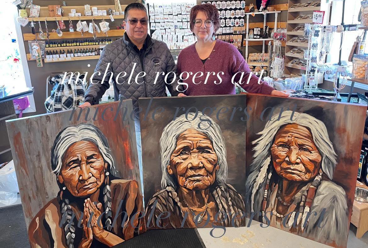Local artist Michele Rogers is behind several of the storefront window paintings currently on display in Noth Battleford. There are cartoon characters having snowball fights and caricatures of curious kids with their tongues stuck to frozen poles, while some of her other work has a bit more of a traditional feel to it featuring embellished wreaths and greenery.