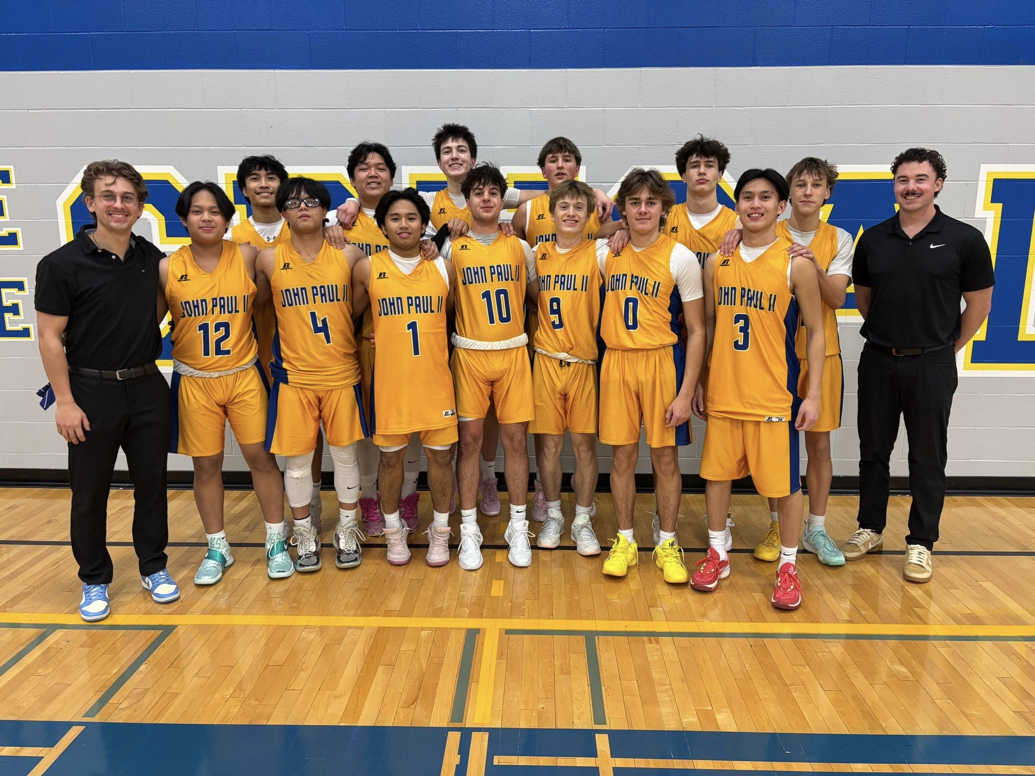 John Paul II Boys basketball team after winning their home tournament. (John Paul II Collegiate/Facebook)