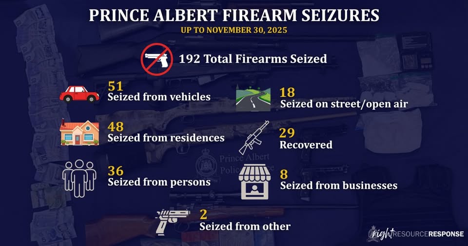 Based on data collected to the end of November, the Prince Albert Police Service is reporting a record number of firearms seizures in 2025.