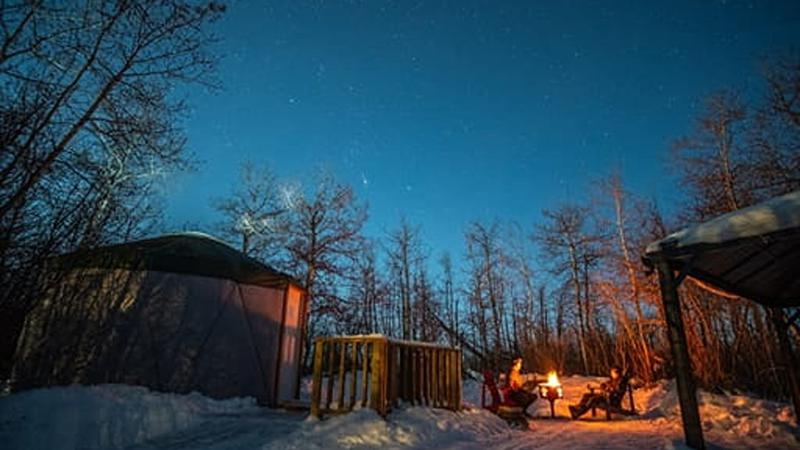 One highlight of the season is Skate the Park, which returns to Echo Valley Provincial Park on December 26 (weather permitting). This ice-skating loop winds through Aspen campground under twinkling fairy lights, with a nearby tipi warming shelter.
