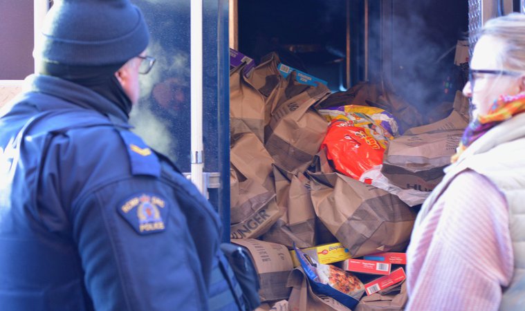 On a cold December day in North Battleford, police cruisers, a 33-foot command truck and a steady stream of bundled-up volunteers created a scene that looked less like a law-enforcement operation and more like a holiday barn-raising.By the time the final boxes were weighed, more than 4,200 pounds of food had been donat...