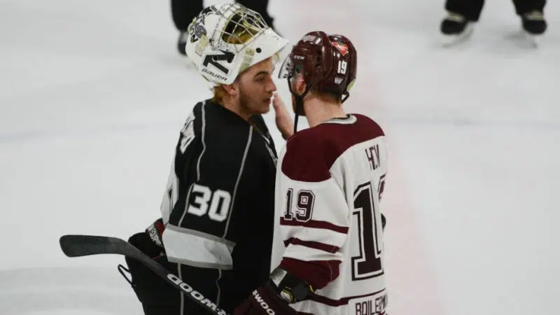 Mar 27, 2019 Stars' goalie Joel Grzybowski, pictured here shaking hands with Bombers' forward Brandson Hein at the conclusion of two teams' seven-game series. Grzybowski kept Hein and the Bombers' offence to two goals or fewer in five of the seven games. (Martin Martinson/battlefordsNOW Staff)