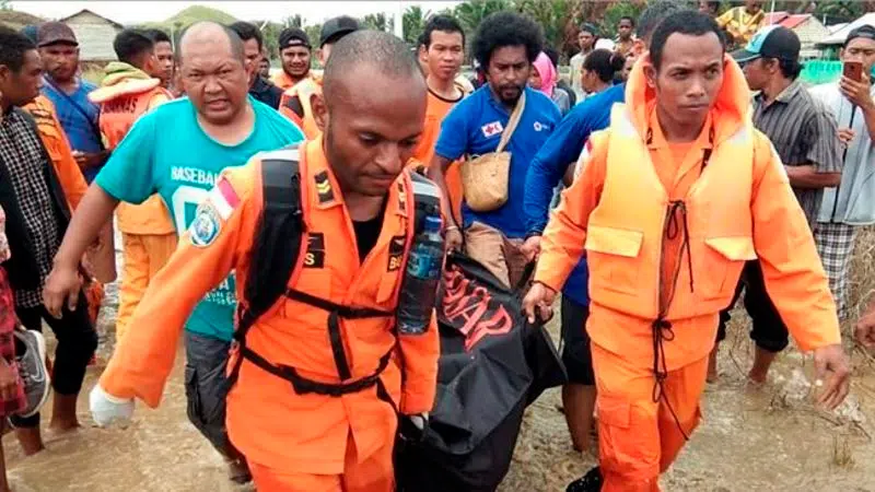 JAYAPURA, Indonesia - Flash floods and mudslides triggered by days of torrential downpours tore through mountainside villages in Indonesia's easternmost province, killing at least 58 people and leavin...