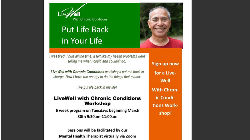 Sign up now for a Live-Well with Chronic Cnditions Workshop.See the poster below for full details.