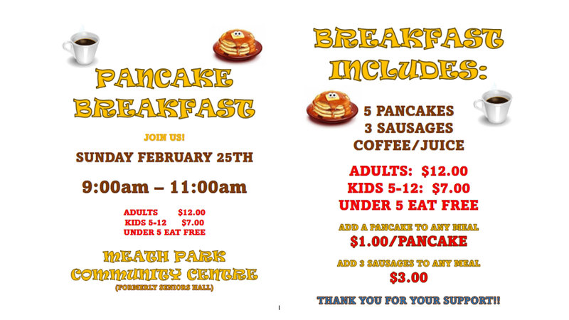 The Meath Park Community Centre is hosting a Pancake Breakfast which includes 5 pancakes, 3 sausages coffee and juice.See the poster for full details.