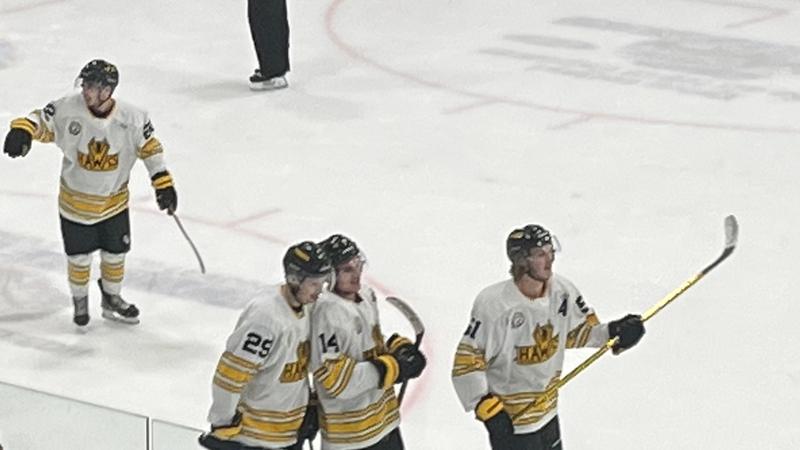 The Nipawin Hawks stunned the Melville Millionaires Sunday scoring in the final minute of regulation and in overtime to pick up a huge 3-2 win on the road.Sunday's first of six meetings was an importa...
