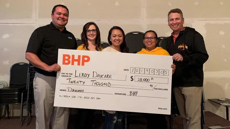 The LeRoy Daycare Project has received a financial boost from BHP.The potash company has given LeRoy Daycare $20,000 for renovations to the facility."The donation we received is huge," LeRoy Daycare p...