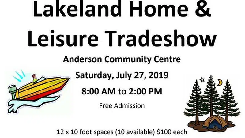 The Lakeland Home and Leisure Tradeshow will be Saturday, Jully 27 at the Anderson Community Centre in Christopher Lake.There are several vendor spaces available.See the poster for details.