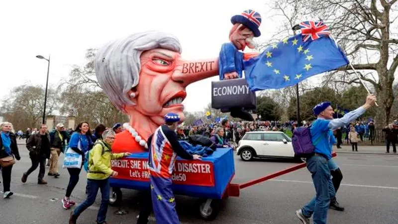 LONDON - Anti-Brexit protesters flooded into central London by the hundreds of thousands on Saturday, demanding that Britain's Conservative-led government hold a new referendum on whether Britain shou...