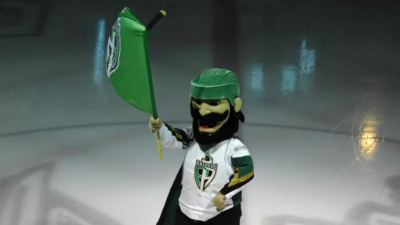 Mar 23, 2019 Riley the Raider fires up the crowd at centre ice before Game 1 of the best-of-seven playoff series between the Raiders and Rebels, Friday at the Art Hauser Centre. Jeff D'Andrea/paNOW Staff