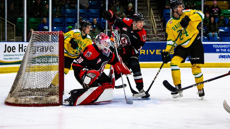 PRINCE ALBERT, SK - The Prince Albert Raiders won their third game in a row on Saturday night, squeaking past the Moose Jaw Warriors 5-2 at the Art Hauser Centre. The win comes a day after defeating t...