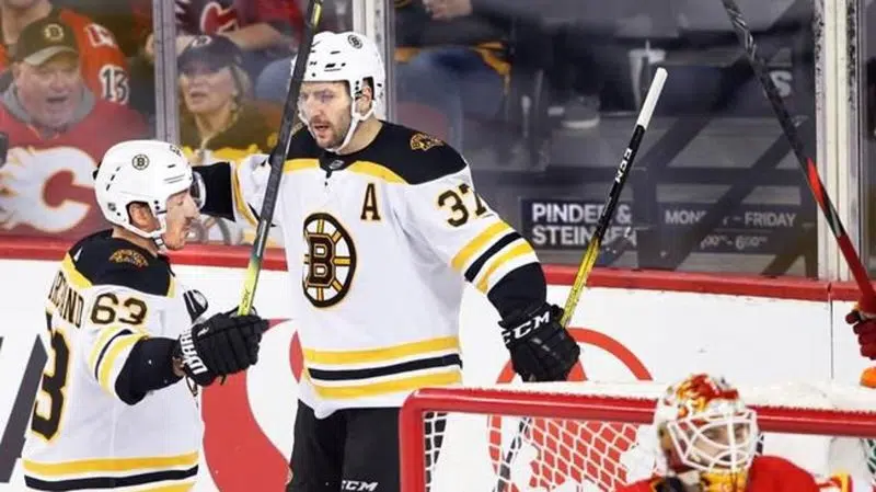 Bergeron stays hot with two goals as Bruins topple Flames 4-3
