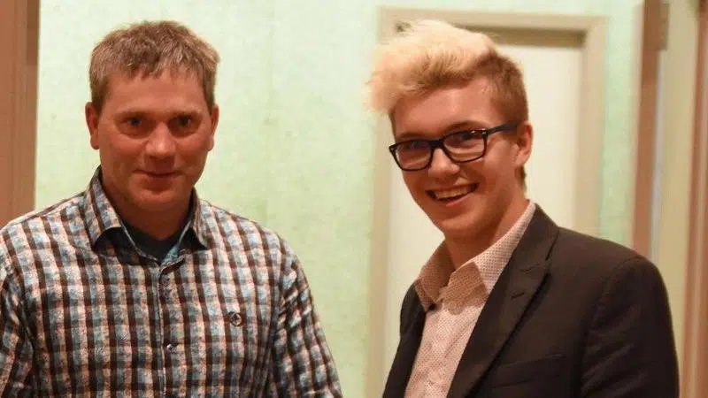 Feb 18, 2020 Kalen Ukrainetz (right) receives a Community Service Award at last season's award's banquet for the Tisdale Trojans. (Aaron Schulze/northeastNOW Staff)