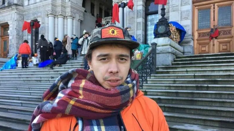 Wet'suwet'en supporters light ceremonial fire at steps of B.C. legislature