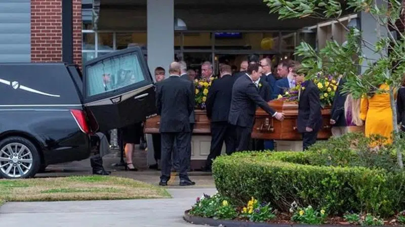 LAFAYETTE, La. - Family and friends wearing purple and gold said goodbye Thursday to a Louisiana woman and her son who were on their way to see the Peach Bowl when they died in a plane crash. Gretchen...