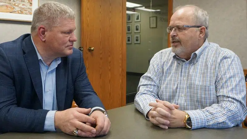 Nov 26, 2019 Conservative MP Randy Hoback (left) speaks with P.A. Mayor Greg Dionne (right). (Alison Sandstrom/paNOW Staff)