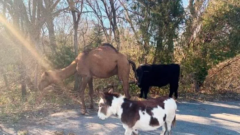 GODDARD, Kan. - Authorities discovered a camel, a cow and a donkey roaming together along a Kansas road in a grouping reminiscent of a Midwestern Christmas Nativity scene. The Goddard Police Departmen...