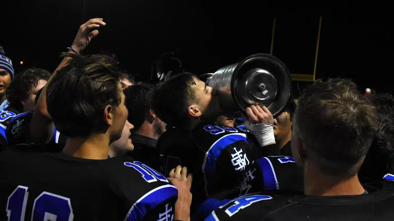 Oct 17, 2019 Marauders linebacker Thomas Rusk kisses the Canadian Tire Classic cup after winning it on Thursday over the Crusaders at Max Clunie Field. Jeff D'Andrea/paNOW Staff