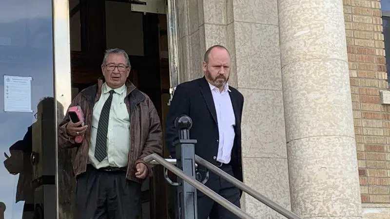 Oct 08, 2019 Photo taken Monday of Napoleon Mercredi and Garth Bendig leaving court. (Nigel Maxwell/ paNOW Staff)