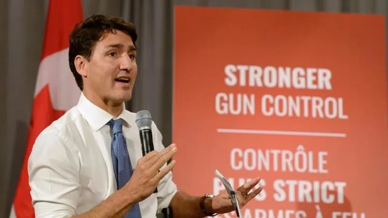TORONTO - Liberal Leader Justin Trudeau says his party wants to strengthen gun control while his Conservative opponents will weaken it, which he is presenting as a clear choice for vote...