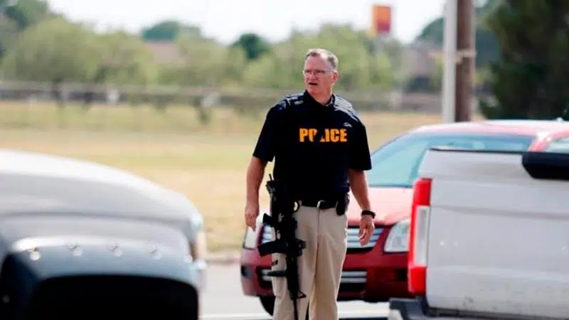 AUSTIN, Texas - At least five people were dead in West Texas after a man who was stopped by state troopers when his vehicle failed to signal a left turn opened fire and fled, shooting more than 20 peo...