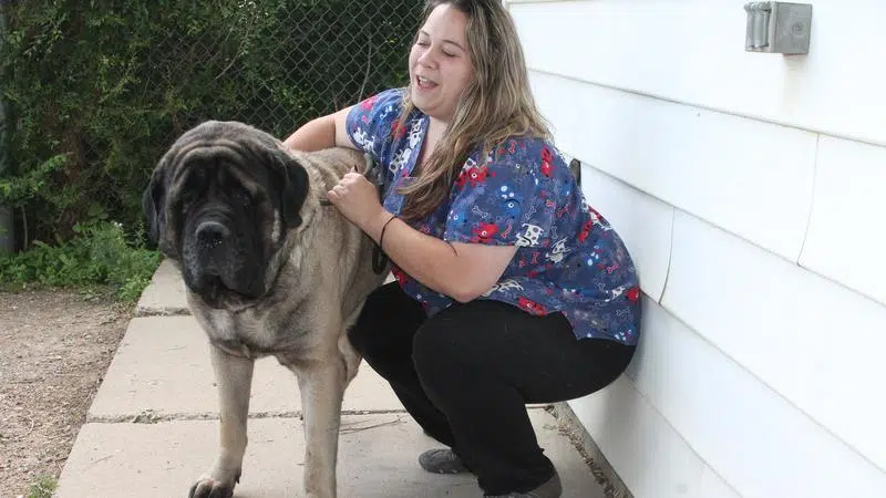 Jul 29, 2019 Assistant Manager Jennifer Kaye shown Monday with a purebred English Mastiff called Roman. (Angela Brown/battlefordsNOW Staff)