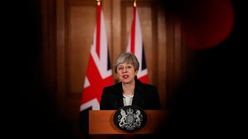 LONDON - Exactly 1,000 days after Britain voted to leave the European Union, and nine days before it is scheduled to walk out the door, Prime Minister Theresa May hit the pause button Wednesday, askin...