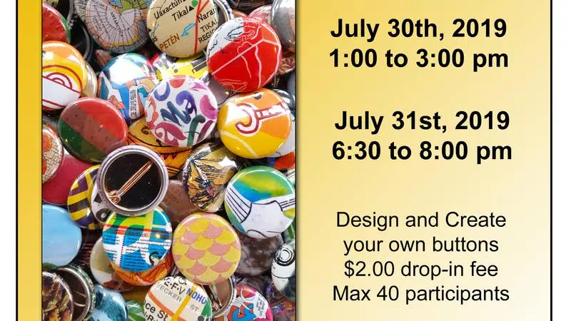 The Chapel Gallery is hosting Sharpie Art Button Making Workshop July 30 - 31.See the poster for full details.