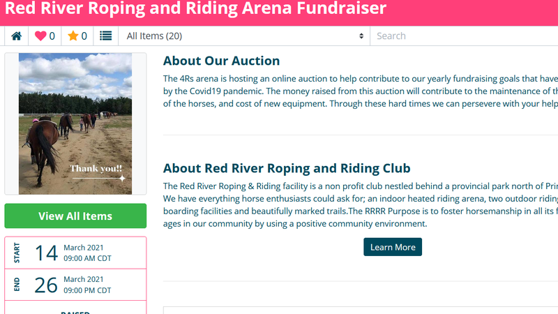 The Red River Roping and Riding Arena is hosting an online auction and garage sale in an attempt to fundraise money for facility maintenance, horse care, and equipment. Covid-19 shut down many of our ...
