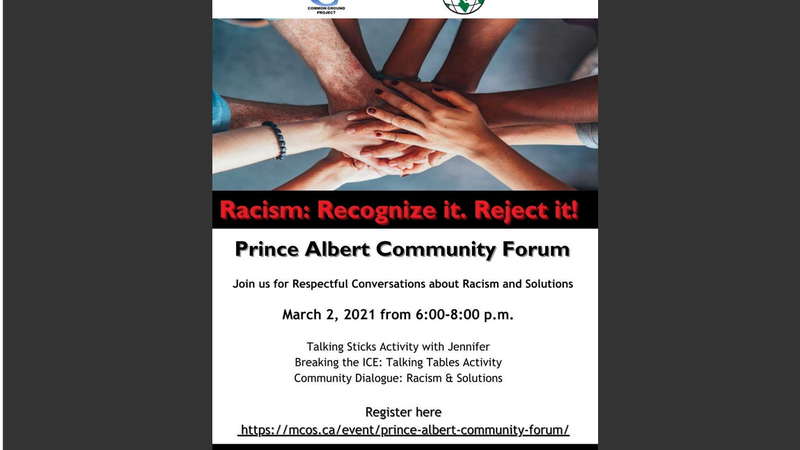 We would like to invite you to Prince Albert's Community Forum. Join us for a respectful conversations about Racism and Solutions for our Community: March 2nd, 2021; 6:00-8:00pm via ZOOM. Click the li...
