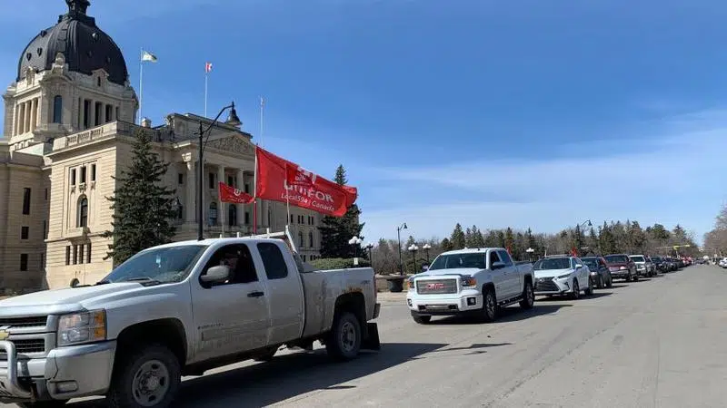 Hundreds of vehicles turned out with horns blaring and Unifor flags flying to drive past the Saskatchewan Legislative Building on Wednesday.Workers stayed in their trucks in a parade held at the same ...