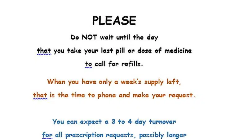 The La Ronge Medical Clinic is requesting that those needing refills of medication anticipate at least a 3 or 4 day wait - so to give notice to pharmacy a week before supply runs out.