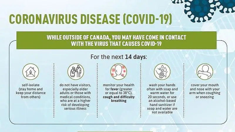 While outside of Canada, you may have come in contact with the virus that causes COVID-19For the next 14 days:self-isolate (stay home and keep your distance from others);do not have visitors, especial...