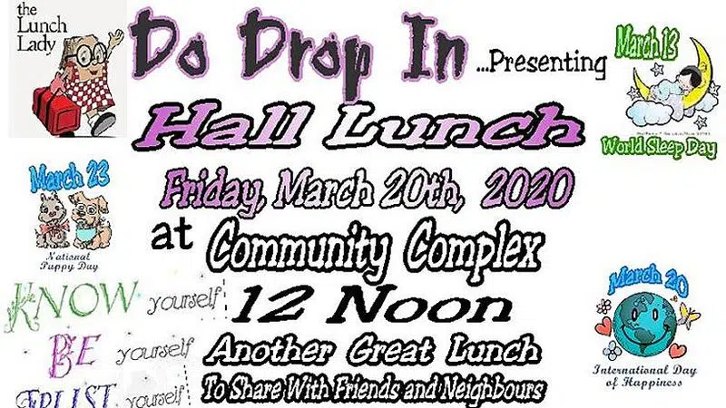 The Meota Lakeshore Lions are hosting Do Drop In Community Lunch at the Community Complex on Friday, March 20th.Everyone is welcome. Donations will be gratefully accepted.