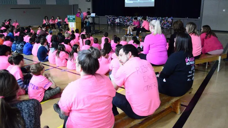 Pink Shirt Day is being marked across Saskatchewan.Students at John Diefenbaker Public School attended a special assembly Wednesday afternoon where they heard from speakers and watched anti-bullying v...
