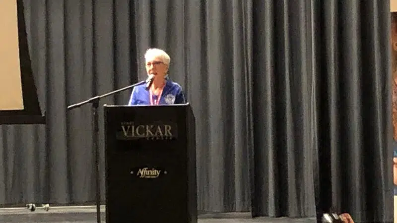 Jan 15, 2020 NCHCF Chair Peggy George addresses the crowd at the Melfort Heliport fundraising campaign launch (Mat Barrett/northeastNOW Staff)