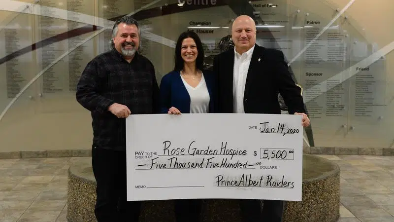 The Prince Albert Raiders are getting behind the Rose Garden Hospice.On Tuesday morning the team donated $5,500 to help make the facility a reality. Cliff Mapes, executive director of the team's busin...