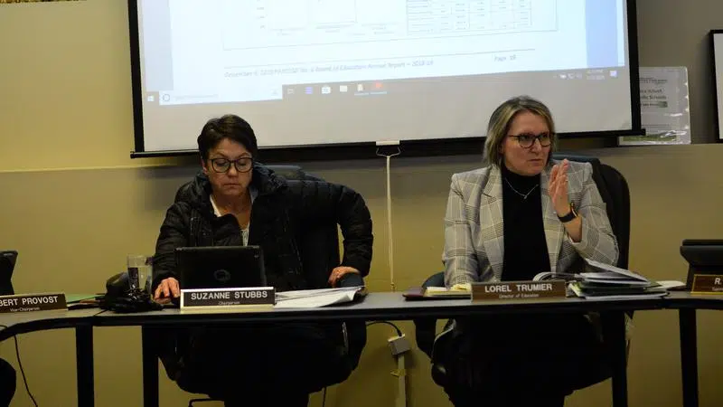 Jan 14, 2020 Board chair Suzanne Stubbs and education director Lorel Trumier going over the report Monday evening. (Michael Joel-Hansen/paNOW Staff)