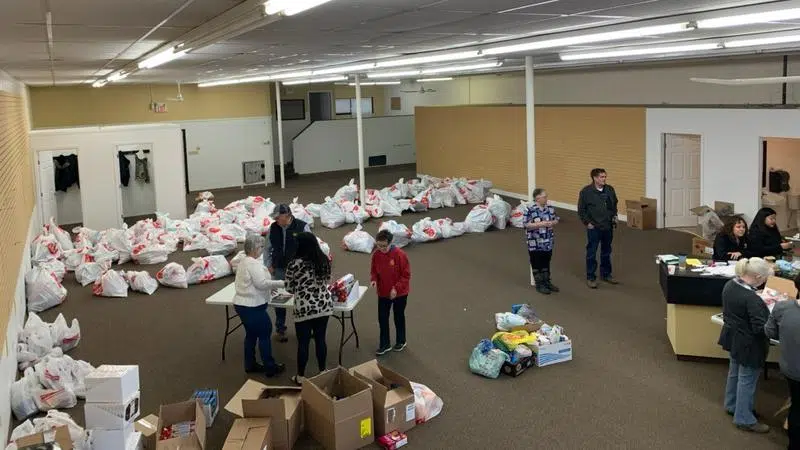 Dec 20, 2019 Volunteers gather to organize Christmas hampers in Melfort. (Submitted photo/Rick Robins)