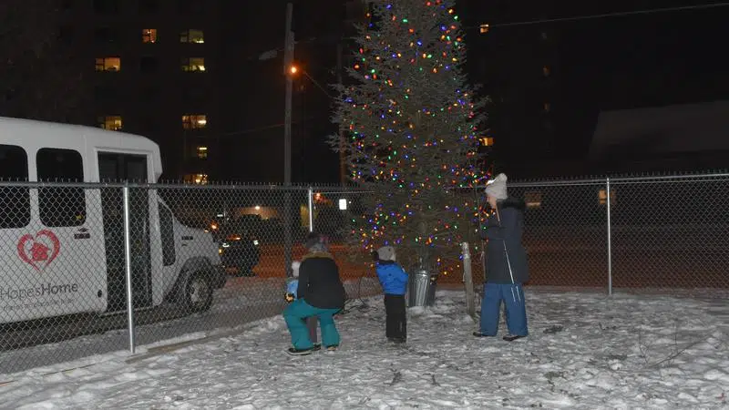 Dec 18, 2019 Hope's Home lit up a tree at their building Tuesday evening. (Michael Joel-Hansen/paNOW Staff)