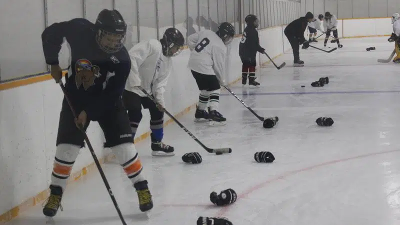 Dec 15, 2019 Players work on their stick handling at the PAGC Christmas Hockey School on Saturday. (Ian Gustafson/paNOW Staff)