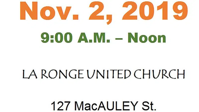 The La Ronge United Church Yard Sale is November 2nd from 9:00 a.m. until noon.Head on over to the La Ronge Unted Church at 127 MacAuley Street to find some great deals.