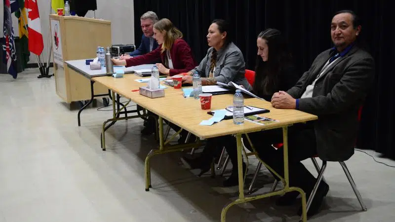 Oct 09, 2019 From left, Randy Hoback, Estelle Hjertaas, Harmony Johnson-Harder, Kelly Day and Brian Littlepine took questions from the public Tuesday night.(Michael Joel-Hansen/paNOW Staff)